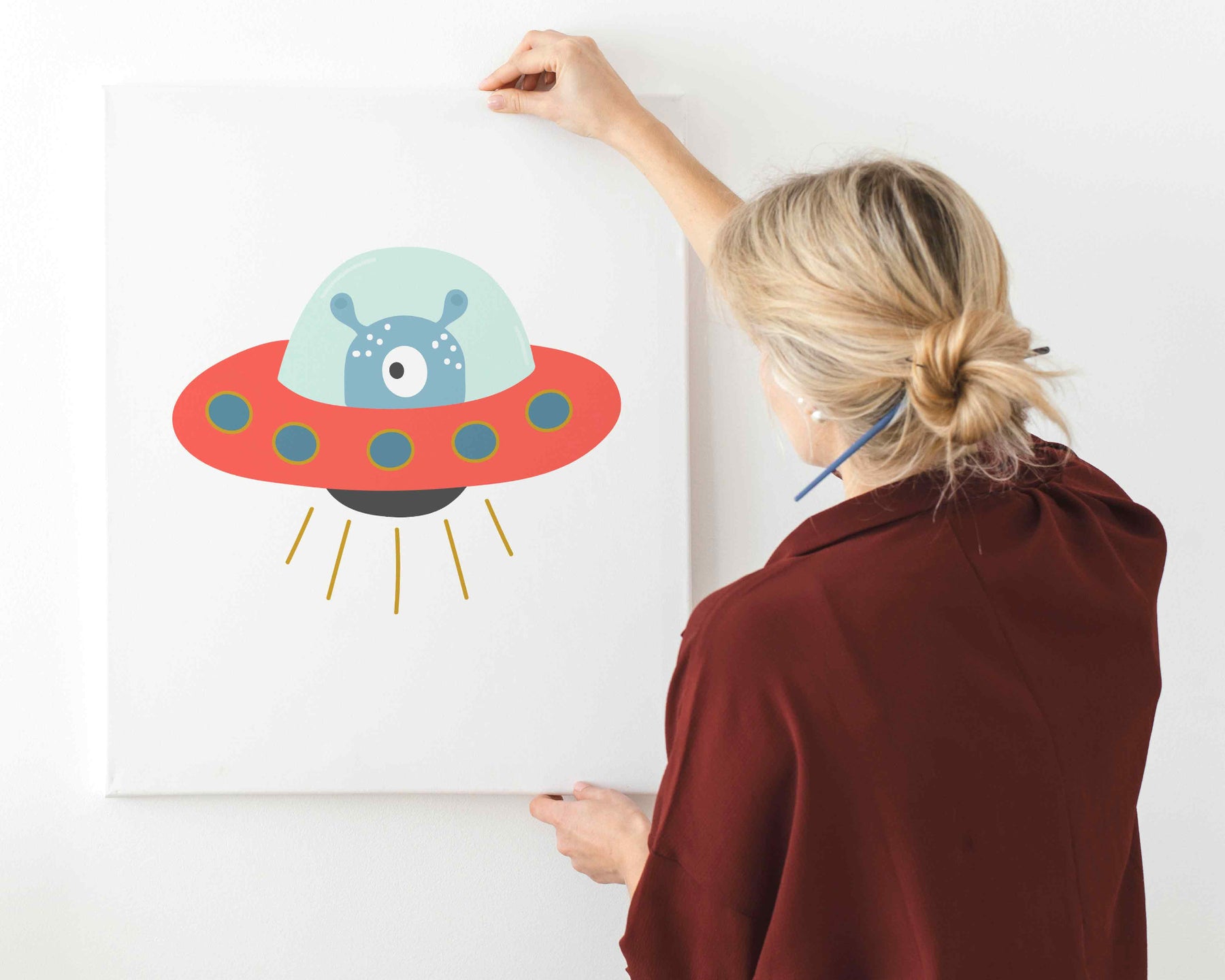 Boys Wall Art Canvas Print Outer Space UFO, Boys Nursery Wall Art, Boys Bedroom Art Prints, Boys Wall Decor | Pippa + June