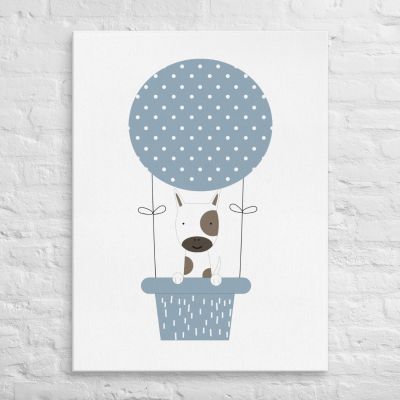 Let your child's imagination take flight with this enchanting canvas wall art featuring a precious puppy drifting through the sky in a beautiful blue hot air balloon. This whimsical artwork sparks creativity and wonder, transforming any bedroom into a magical space filled with adventure and dreams. Perfect for young dreamers who love imaginative storytelling, it becomes an instant beloved treasure on the wall.