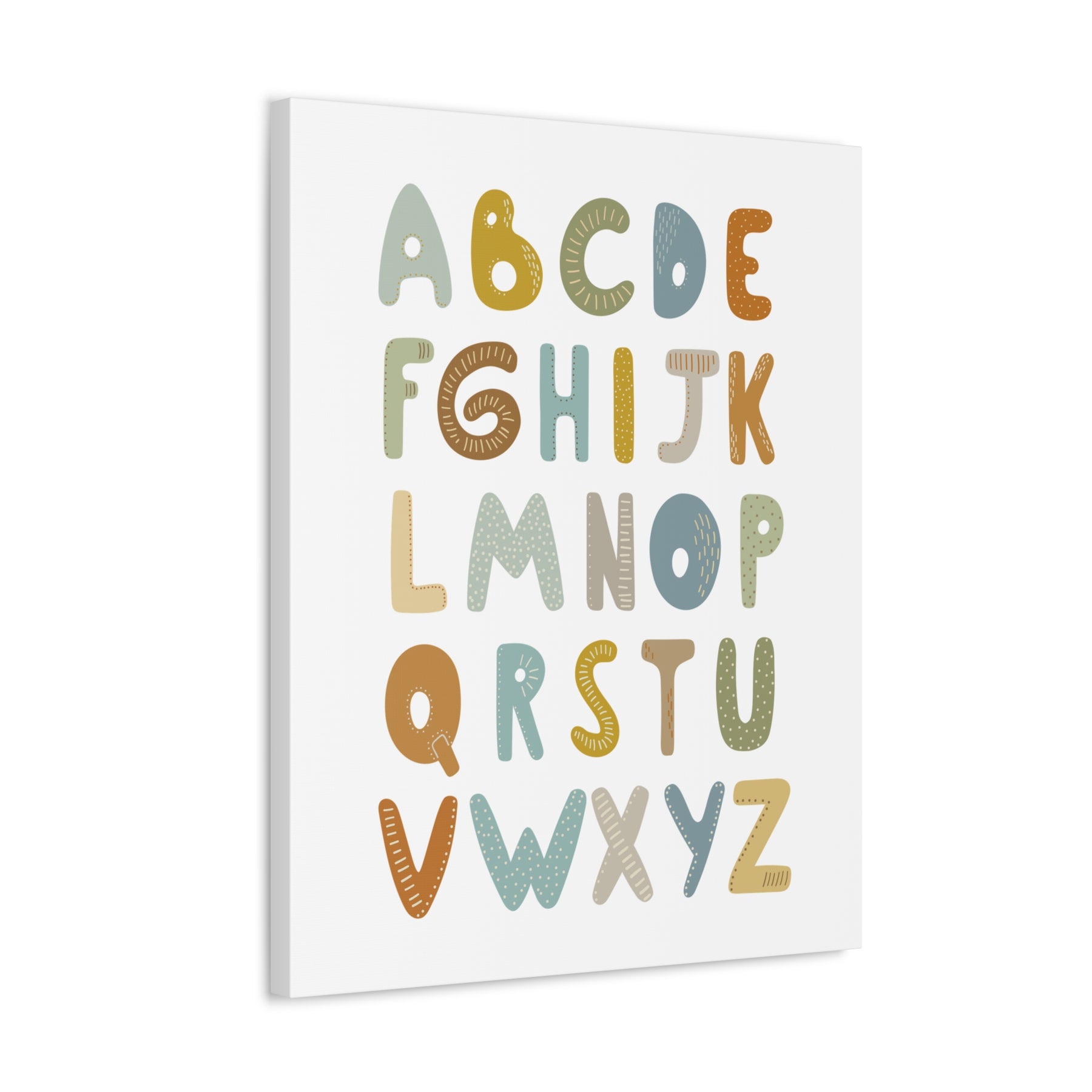 Elevate your child's space with this stunning alphabet art print that merges learning with décor. Printed on premium cotton canvas with a resilient, fade-resistant coating, this artwork stays vibrant through years of enjoyment. The thoughtfully designed composition and soothing neutral palette create an engaging environment that nurtures curiosity and fosters creative growth. Select from multiple dimensions to match your room's dimensions, and benefit from straightforward setup with pre-installed hanging hardware. Manufactured in the USA, this wall piece transforms empty walls into purposeful focal points where your child's imagination can truly blossom.