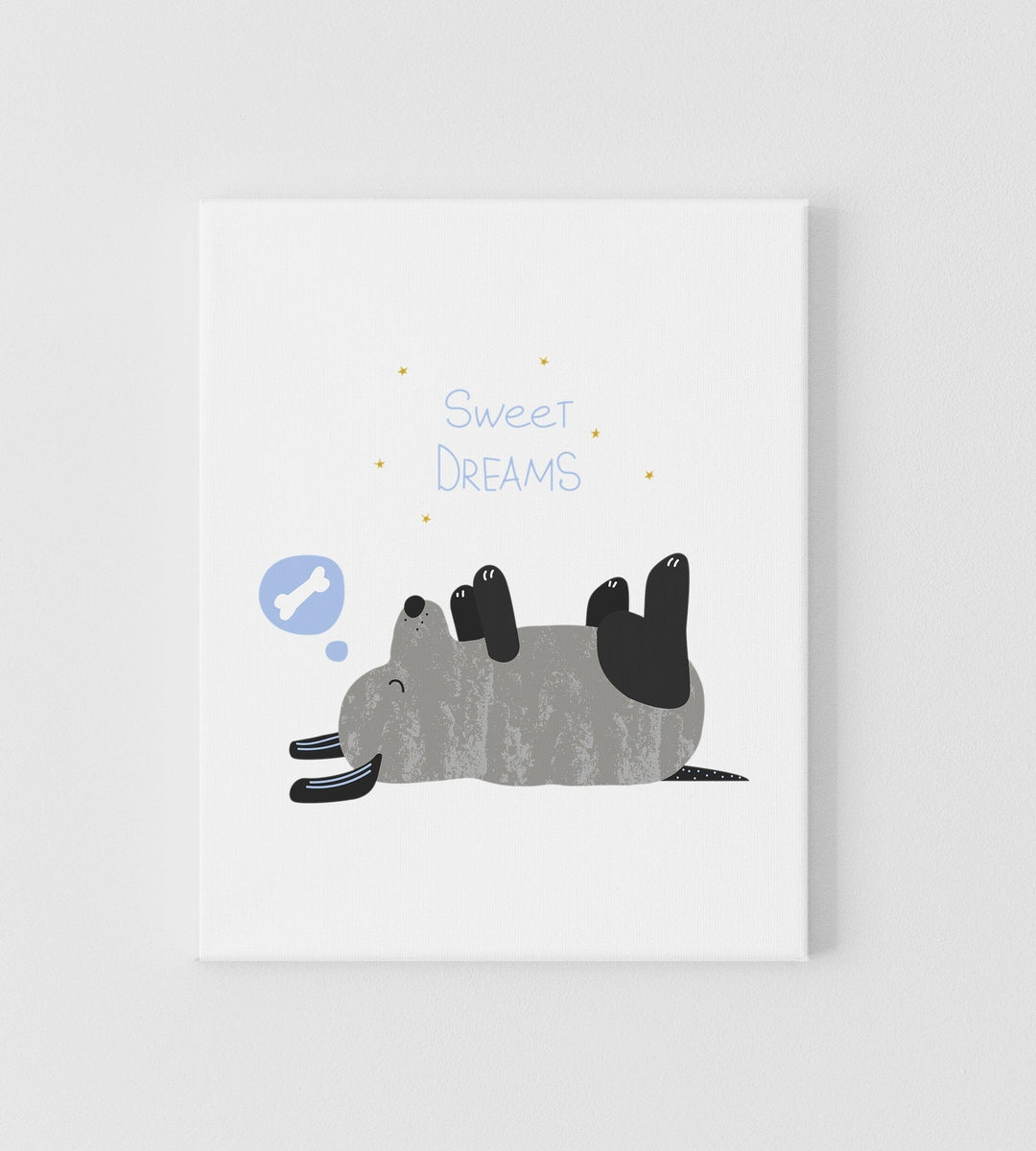 Our kid's canvas art print features a cute design in a fun color palette which is sure to add that final touch to your child's bedroom or baby's nursery. Each canvas is made of a finely textured artist-grade cotton substrate. Available in a large selection of sizes to choose from. Hanging hardware included. Made in the USA.