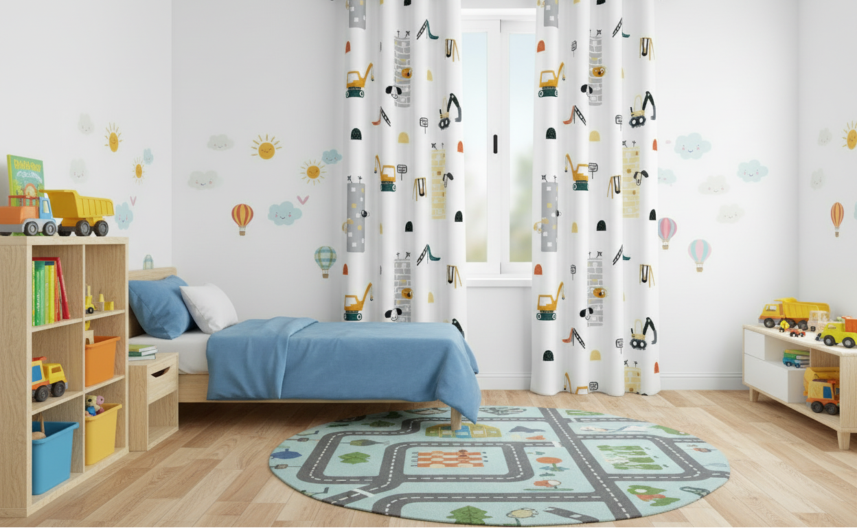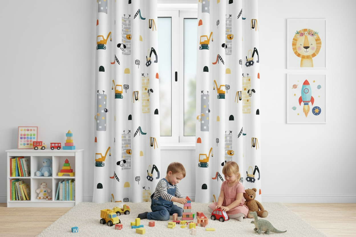 Upgrade your child's bedroom with these premium transport blackout curtain panels that combine style and functionality. Featuring vibrant construction trucks in eye-catching colors, these high-quality curtains spark imagination while delivering complete blackout for deep, restful sleep. The durable design withstands everyday wear and grows with your child's interests. Each set includes two panels with practical 4-inch rod pockets for straightforward hanging. Machine washable for convenient cleaning and care. Proudly crafted and shipped from the USA with worldwide delivery available. Transform your little one's sleep space into a cozy retreat where dreams flourish and rest comes easily.